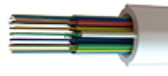 РМ - оптические волокна, объединенные в микромодули с количеством волокон от 2 до 24, расположены внутри полимерной оболочки. Упрочняющие элементы расположены в полимерной оболочке (тип Riser).