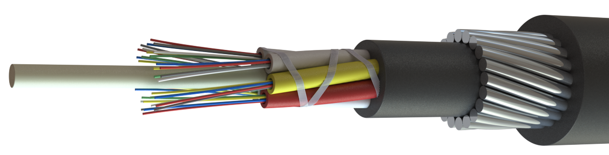 - Оптические модули: Волокна (от 2 до 144) свободно уложены в оптических модулях (трубках из полибутилентерефталата), заполненных гидрофобным гелем. Гель обеспечивает продольную водонепроницаемость кабеля.