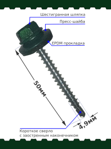 Саморез 4,8х50 SP RAL 6005 зеленый мох